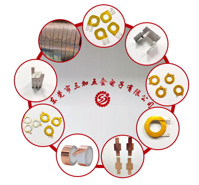 東莞市三加五金電子有限公司?公司主營產品:銅箔.銅帶.自粘銅.鋁帶。并從事設計:定制.加工.五金沖壓成型,再層間貼膠絕緣,折彎等五金配件。達到客戶購回直接組裝做一些大功率.大瓦特數的變壓器用銅圈,客戶能省時...